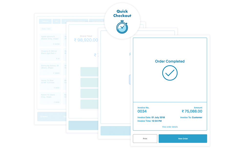 If your store gets busy. We got a solution. We got a quick checkout feature. The quick checkout feature helps you to finish your sale in one single scan. You can scan a product, choose the payment method, print the invoice and finish the sale in just one scan.