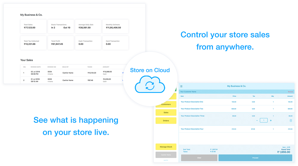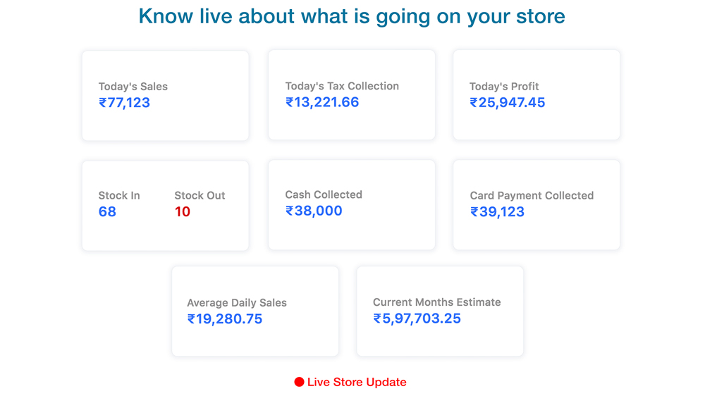 Every single transaction at your store is constantly synced to the cloud so that you can get live updates of your sales and stock.