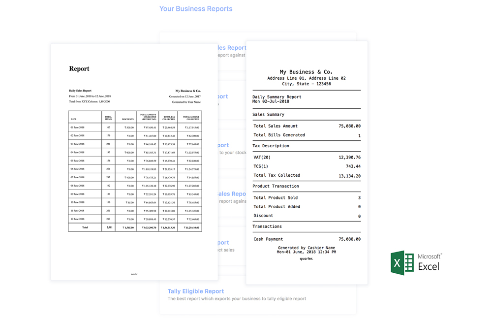 Quarter works integratedly with GST - Goods and Services Tax. Let it be any-type of Taxes, like a Tax on a Tax, we have answer for every tax system in the world. Know and pay your taxes in time with easy and detailed taxation reports.