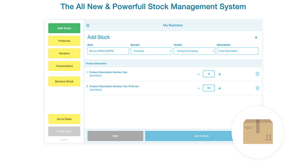 Quarter seamlessly syncs the stock details of your stores products with all your cashiers sales system and also to your online headquarters. This helps everyone to be updated on your stock count.
