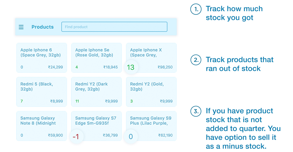 Get a dedicated standalone system to manage your stock. Our unique "Management of Stock" system helps you manage and keep track of your stock on the go. Keep track of your incoming, outgoing, purchased or damaged stock.