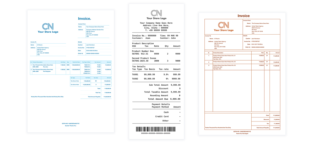 Make your store look unique and appealing. Choose from a range of beautifully designed invoices and modify them to suit your store needs.