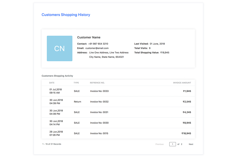 Know your customers better with our easy to use customers shopping history. Quarter helps you keep track of your customers shopping activity and helps you to understand the shopping pattern of your customers.